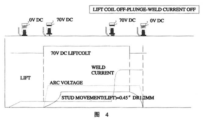 提升線圈失掉電壓,螺柱下降,下落到焊接熔池中,下落時間為12ms。從而完成整個焊接過程(見圖4)。