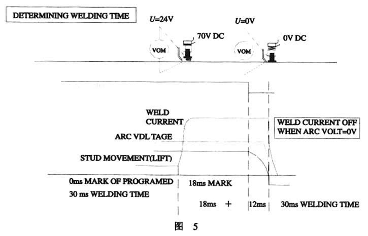 EMHART焊機對焊接時間的定義是:從焊接主電流導通到焊接電弧電壓為0所需的時間(見圖5)。