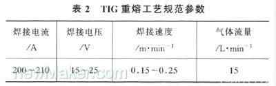 (1)采用TIG重熔法,能有效地改善焊接的形狀和表面成形,降低了接頭的應力集中。