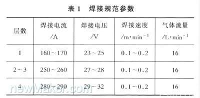 焊接設備:MAG焊采用晶閘管式NBC—500電源,TIG焊重熔設備為SYNCROWAVE—250電源。